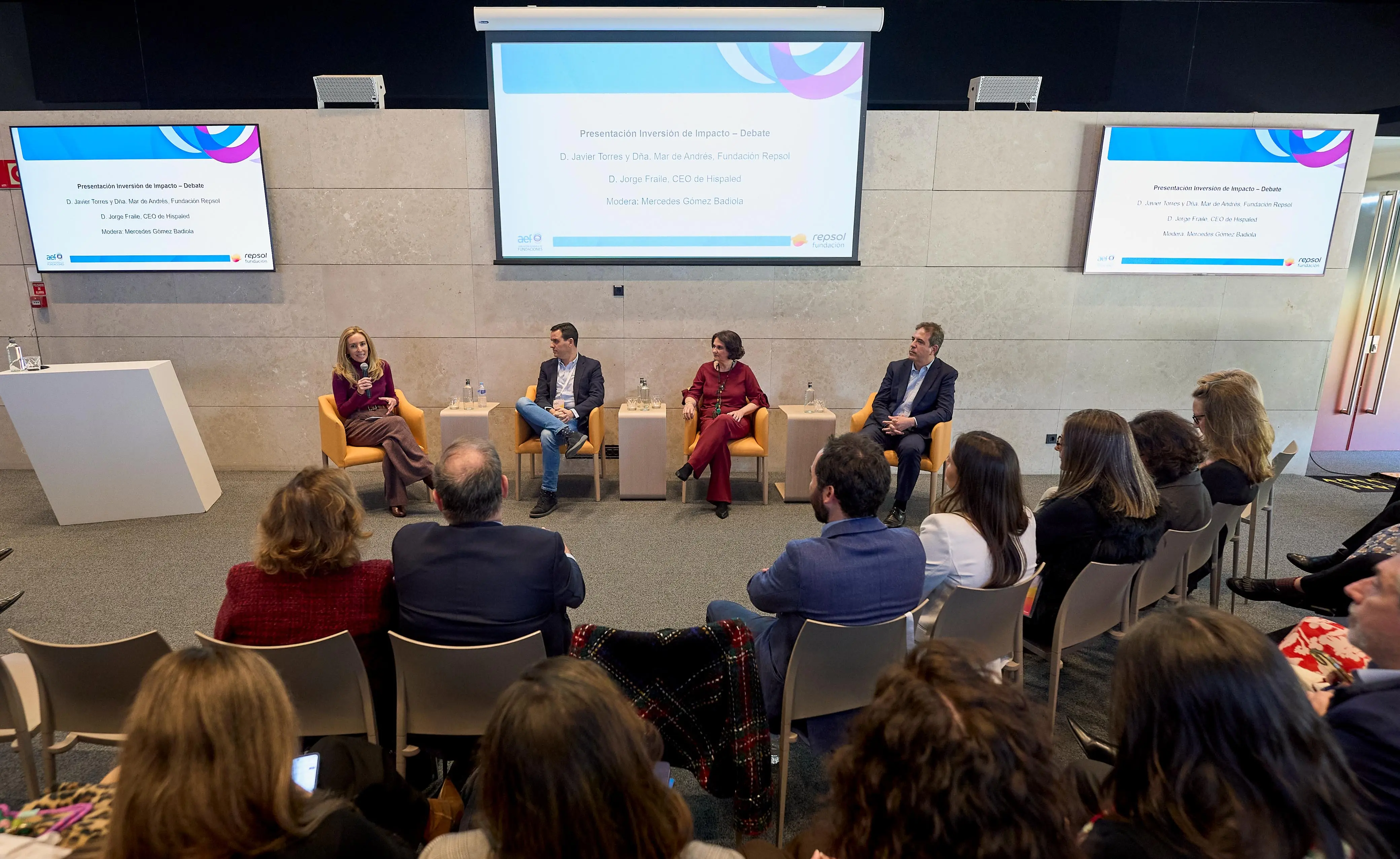 Uno de los momentos clave del encuentro ha sido la mesa redonda sobre inversión de impacto, moderada por Mercedes Gómez Badiola, en la que han compartido su experiencia y aprendizajes Javier Torres, director de Repsol Impacto Social, Mar de Andrés, directora de Transformación Social de Fundación Repsol y Jorge Fraile, CEO de Hispaled, como ejemplo de empresa participada. Un diálogo abierto sobre el modelo de triple impacto —económico, social y medioambiental— y su capacidad para generar oportunidades reales y sostenibles.